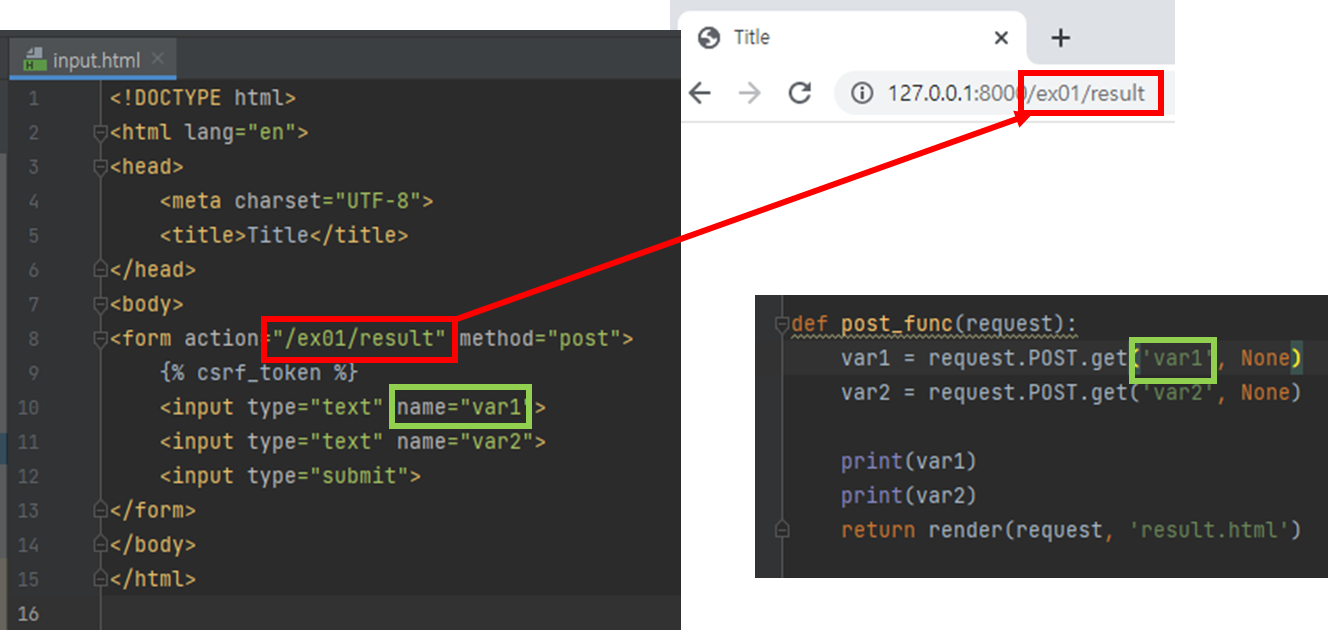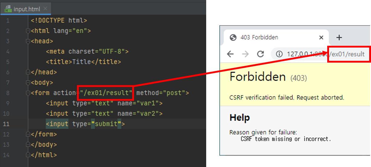 - 그래서 그냥 보내려면 보안 에러 발생, csrf_token 추가로 해결