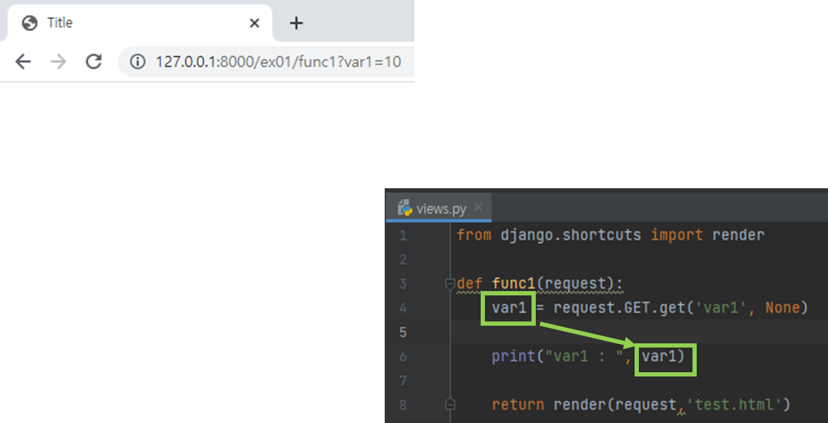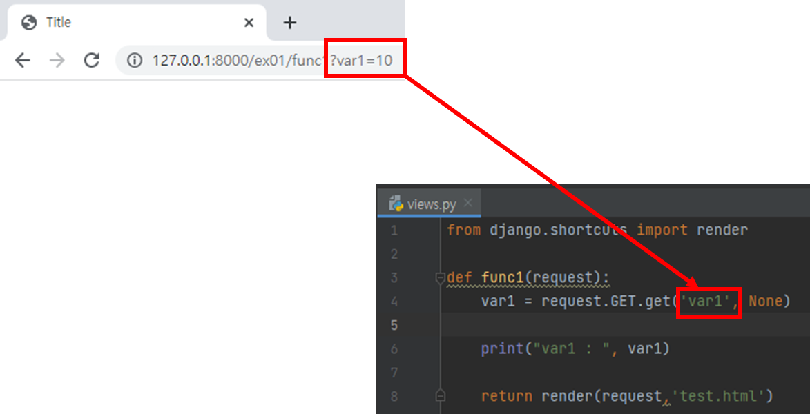- 요청하는 URL 뒤에 ? 다음 보내려는 데이터를 키=값 쌍으로 전송