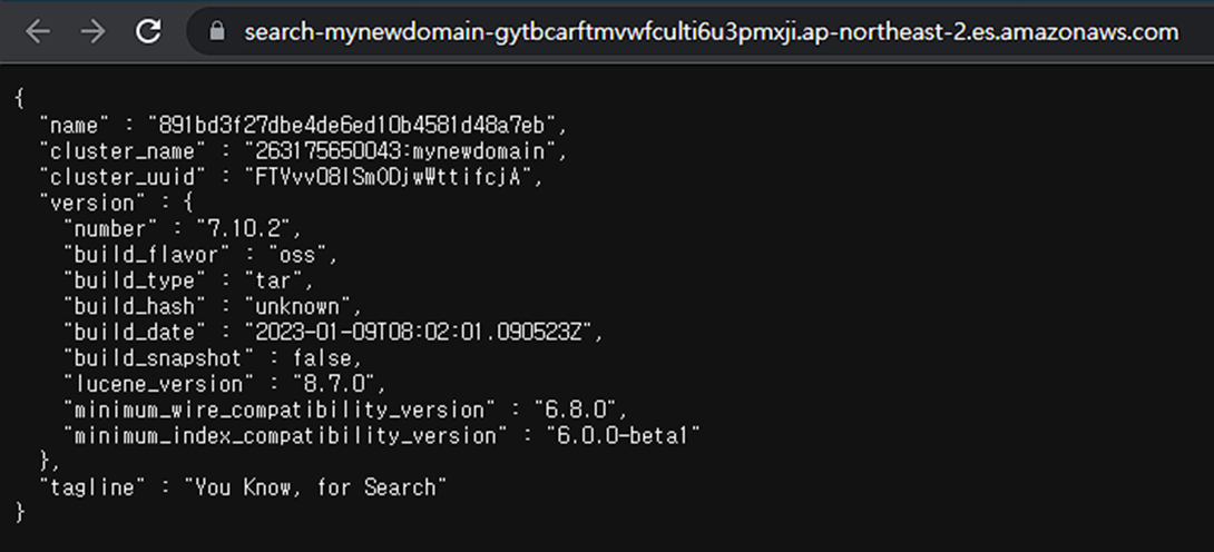 도메인 엔드포인트를 url에 입력하면 볼 수 있다.