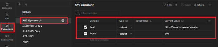 포스트맨으로 들어가 환경변수 설정을 해준다