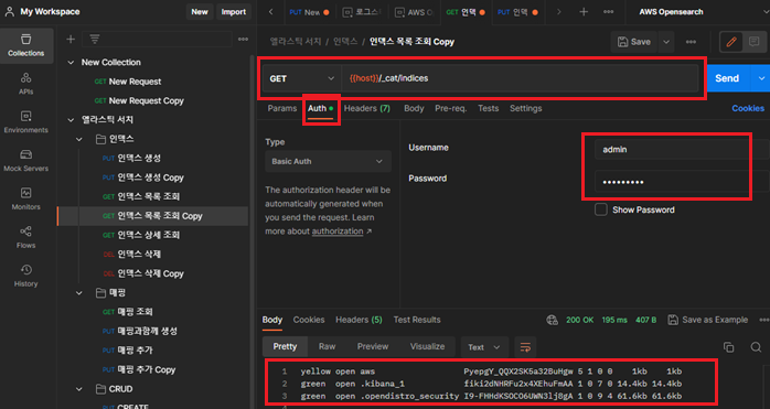 단 Auth에 Type을 Basic Auth으로 지정하고