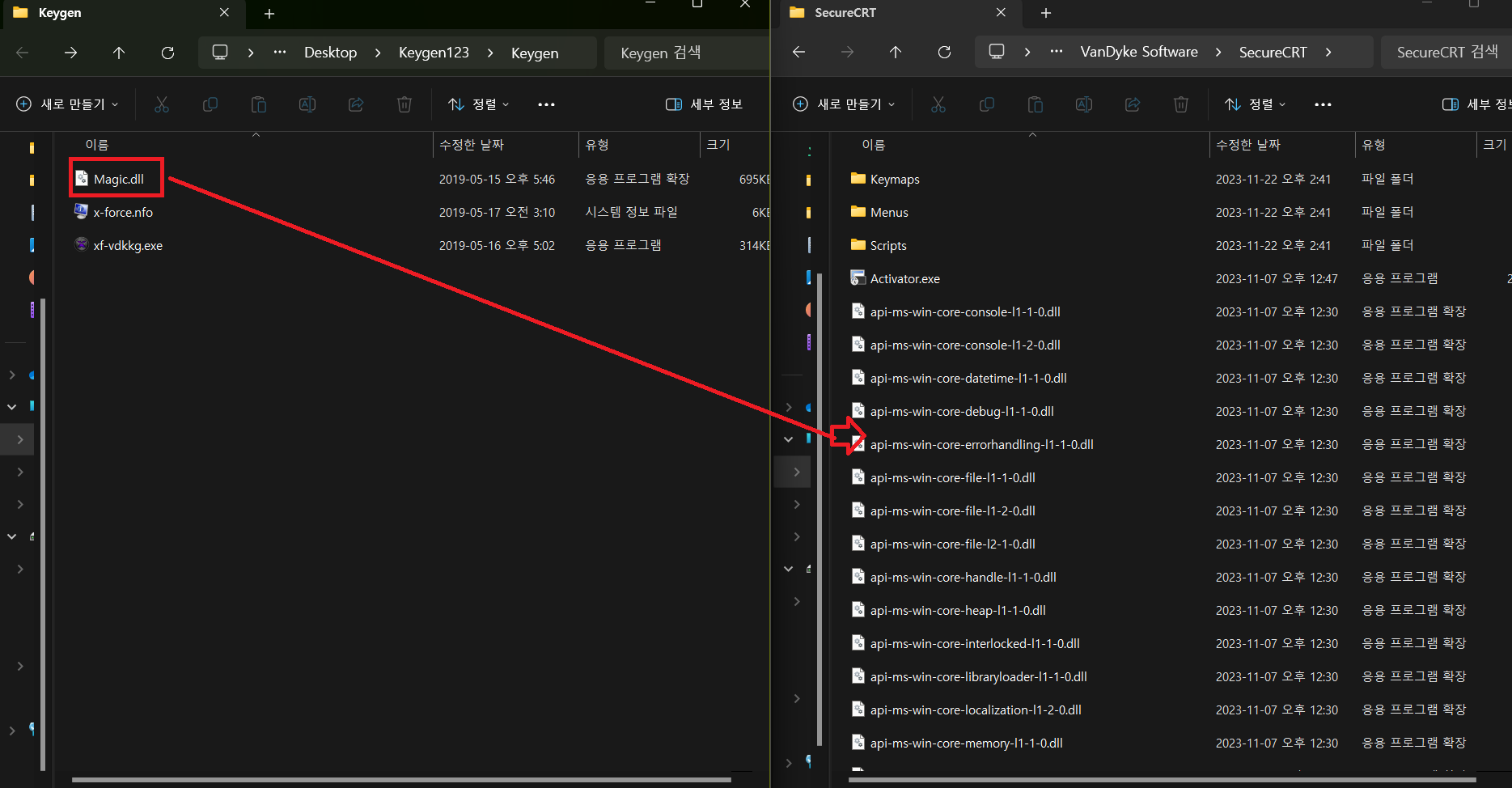Magic.dll 파일을 SecureCRT폴더에 옮기기