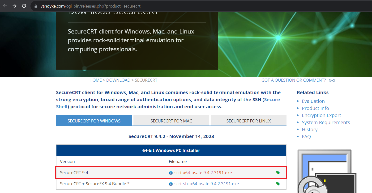 Product를 SecureCRT로 선택 (버전 상관없음)
